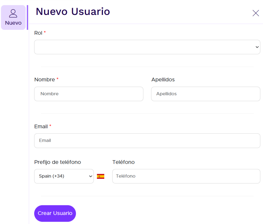 En él, podrás completar los datos del nuevo usuario que necesitas crear. Su nombre y su correo electrónico serán obligatorios.
